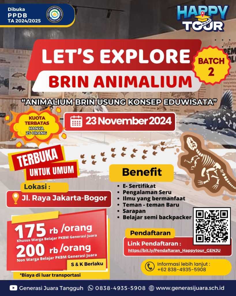 Dalam program Happy Tour 2024, peserta akan diajak mengunjungi BRIN Animalium, sebuah pusat riset dan edukasi hewan yang dikelola oleh Badan Riset dan Inovasi Nasional (BRIN).