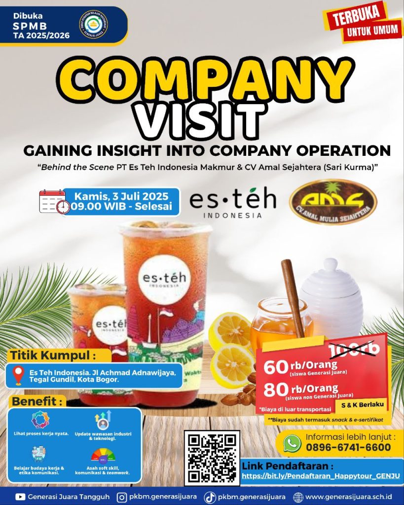 peserta berkesempatan mengunjungi langsung kantor pusat dan dapur produksi Es Teh Indonesia, salah satu brand minuman lokal ternama di Indonesia.