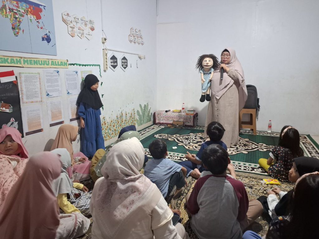 Tidak sedikit anak yang tampak tersentuh, mendengarkan dengan penuh perhatian. Suasana hangat, teduh, dan penuh nilai moral.